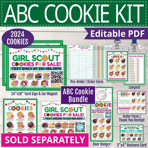 Printable ABC Girl Scout Cookie Yard Sign, 2024 Editable Door